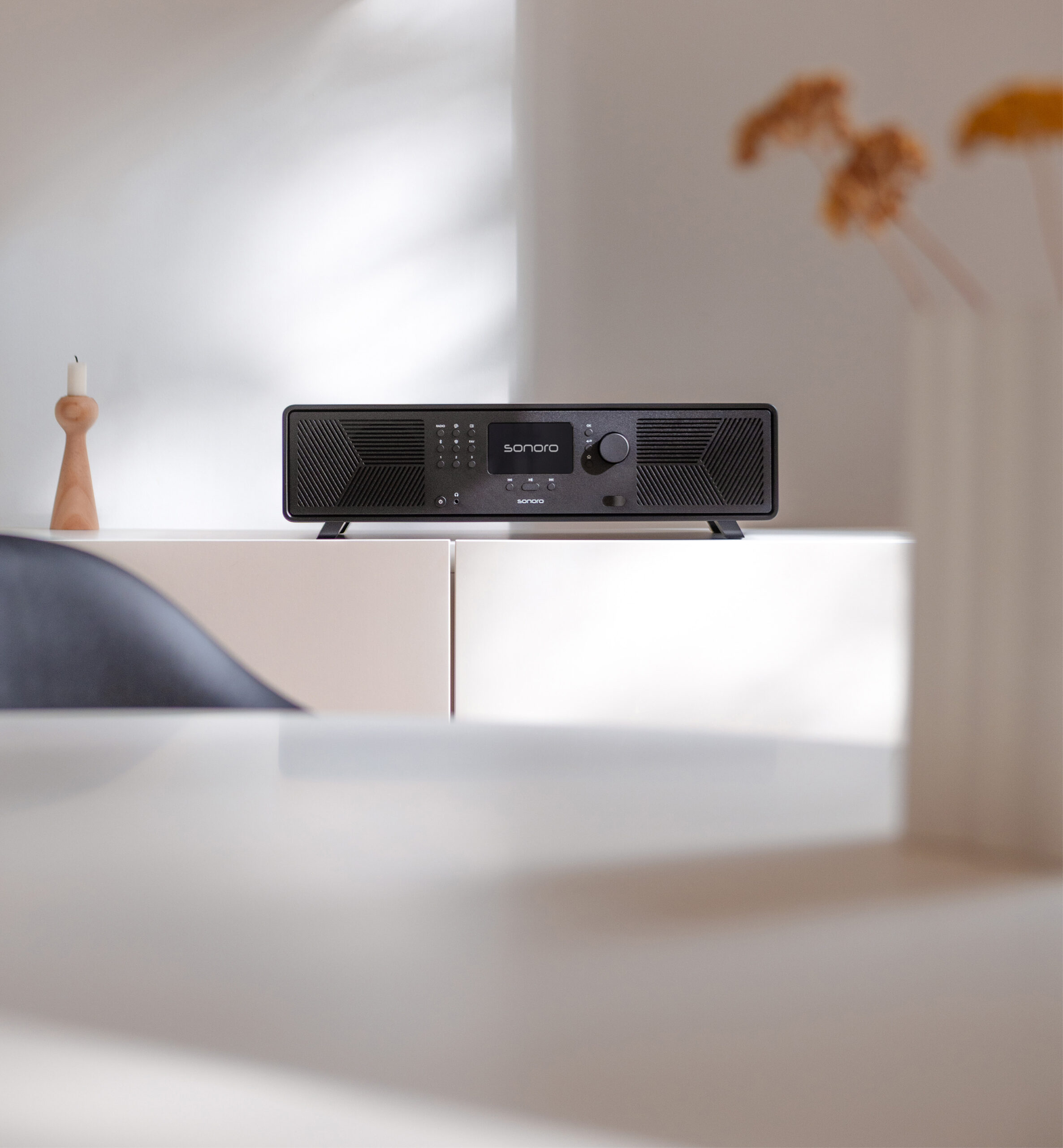 The Sonoro AVATON All-in-One Stereo Music System consistently continues the product design language introduced with the MAESTRO Quantum and MEISTERSTÜCK (Gen.2) in the context of Sonoro’s product DNA. A clear, minimalist look and the use of high-quality materials, including a laser-cut metal front panel set into a hand-sanded wooden housing, result in a compact, sound-optimized device. The smart home connectivity creates an impressive user experience—both visually and acoustically.